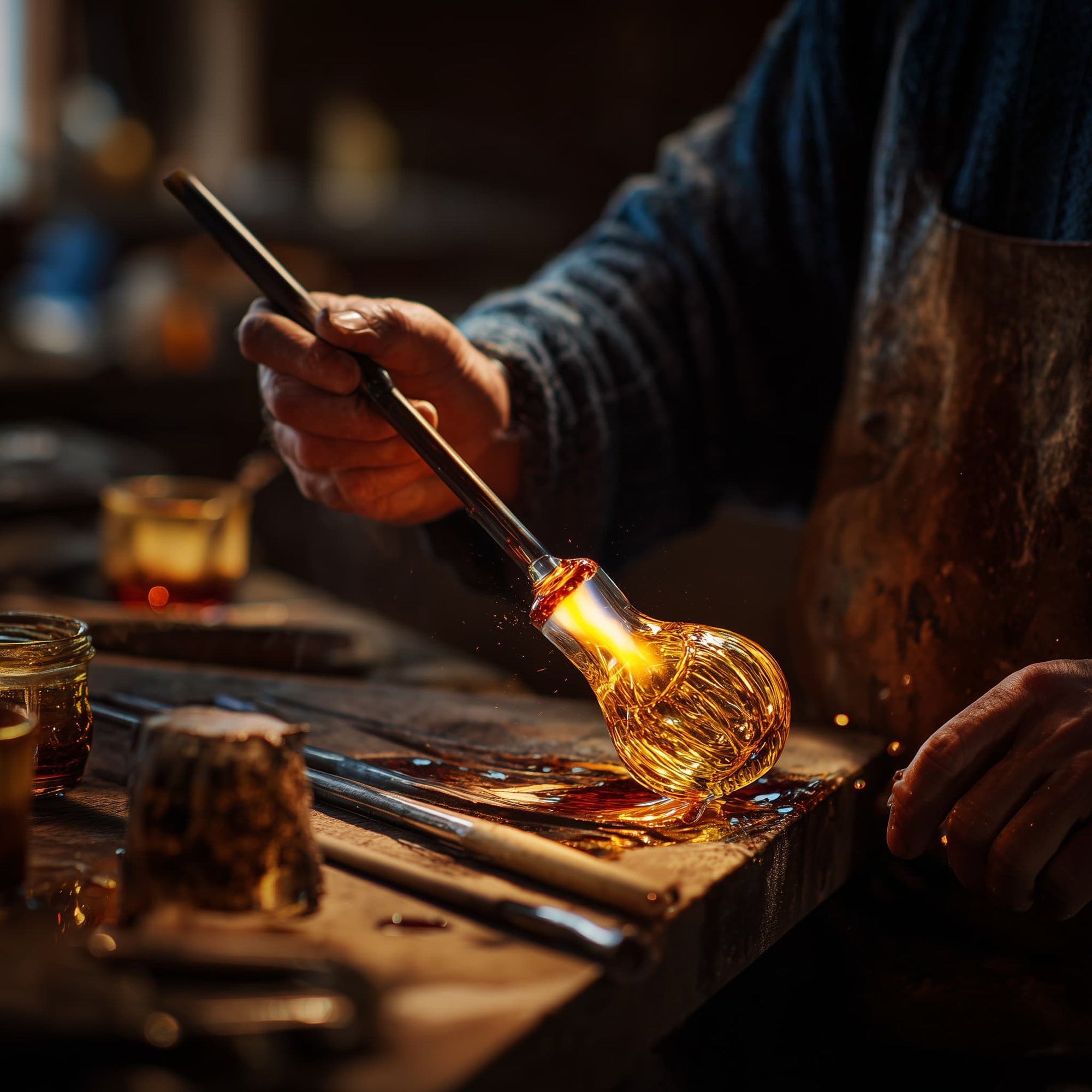 Each piece begins with a single breath. There is a profound intimacy in glassblowing; it is the only craft where the artisan’s life force literally fills the object. No two curves are identical, as each one captures the unique rhythm of the maker’s movement.